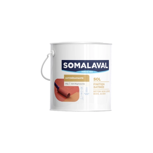 Peinture pour sol à base de résine alkyde solvantée contenant un additif antidérapant synthétique spécial.