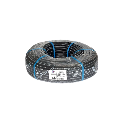 Tuyau Flexpro+ Noir 20mm – 100m, gaine annelée idéale pour le passage sécurisé des câbles électriques en courant fort, adaptée aux installations apparentes ou encastrées dans les bâtiments résidentiels.